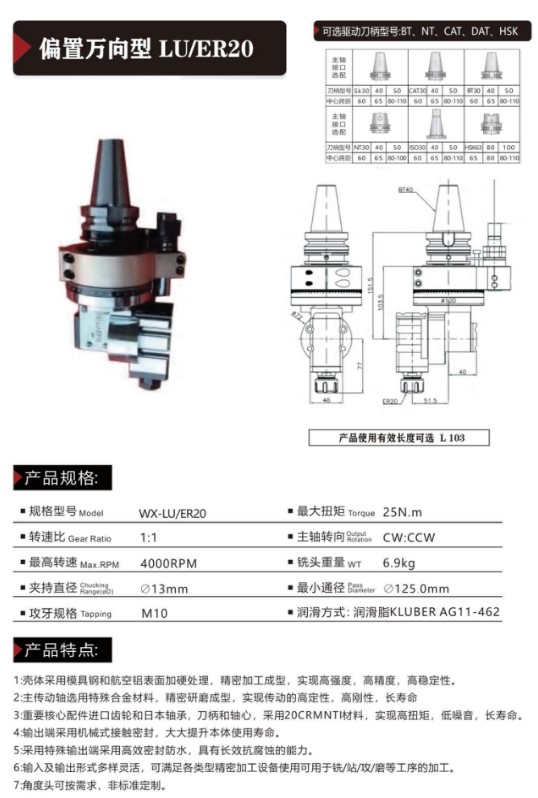 首页 >> 产品中心 >>角度头系列 >> 偏置万向型LU-ER20