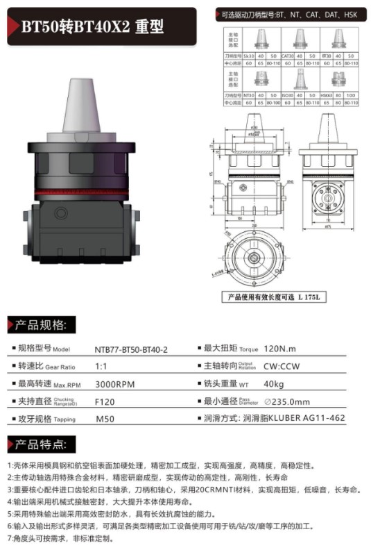 首页 >> 产品中心 >>角度头系列 >> BT50转BT40X2 重型