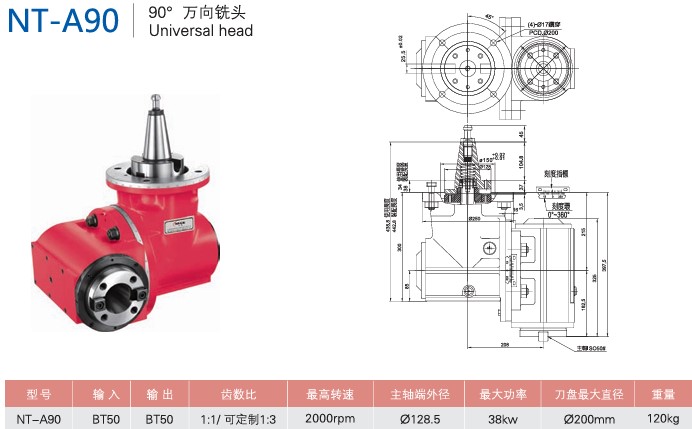 首页 >> 产品中心 >>角度头系列 >> 90°万向铣头 NT-A90