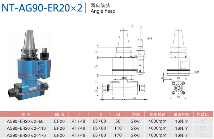 首页 >> 产品中心 >>角度头系列 >> 双向铣头 NT-AG90-ER20x2