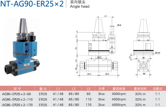 首页 >> 产品中心 >>角度头系列 >> 双向铣头 NT-AG90-ER25x2