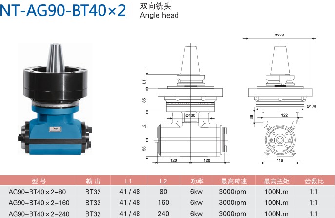 双向铣头 NT-AG90-BT40x2