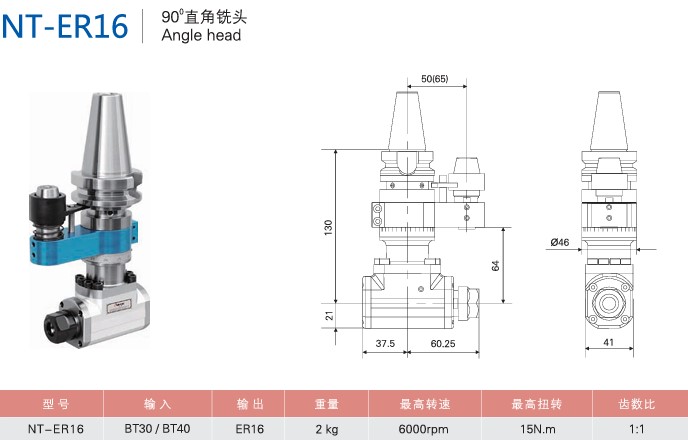 首页 >> 产品中心 >>角度头系列 >> 90°直角铣头 NT-ER16