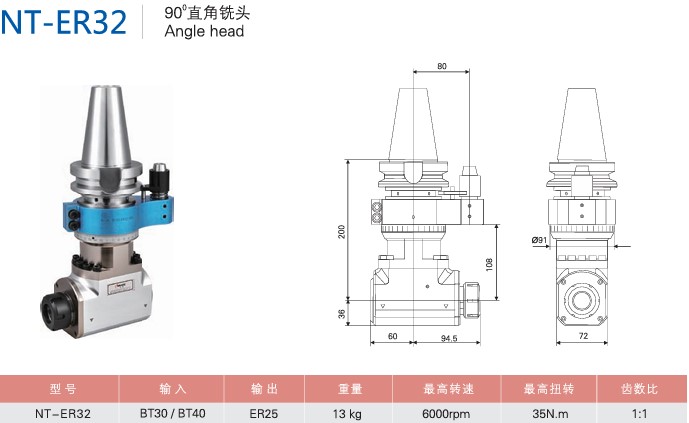 首页 >> 产品中心 >>角度头系列 >> 90°直角铣头 NT-ER32