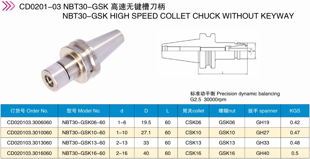 首页 >> 产品中心 >>数控刀柄系列 >> NBT30-GSK 高速无键槽刀柄