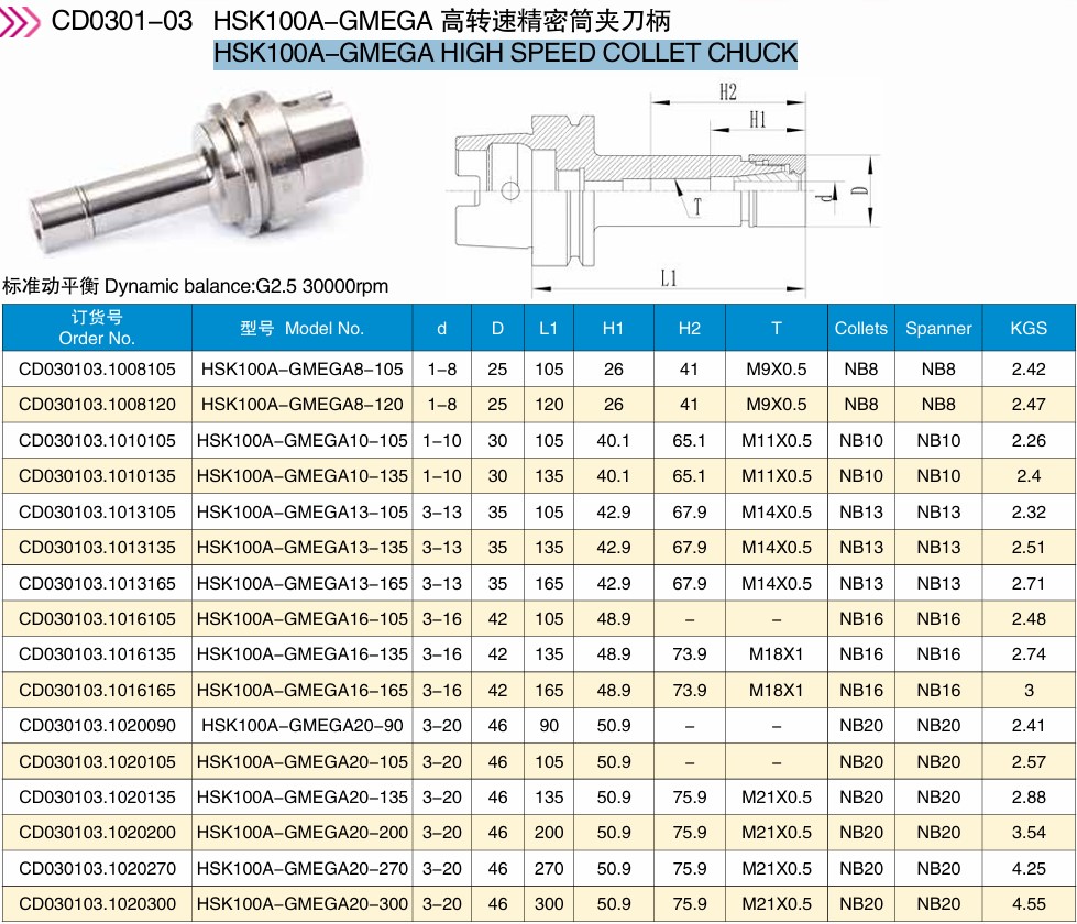 首页 >> 产品中心 >>数控刀柄系列 >> HSK100A-GMEGA高转速精密筒夹刀柄