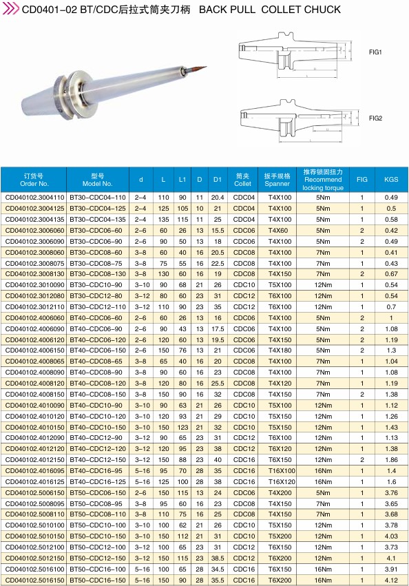 首页 >> 产品中心 >>数控刀柄系列 >> BT-CDC后拉式筒夹刀柄