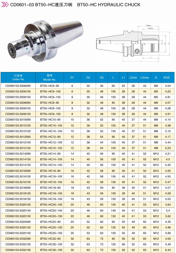 首页 >> 产品中心 >>数控刀柄系列 >> BT50-HC液压刀柄