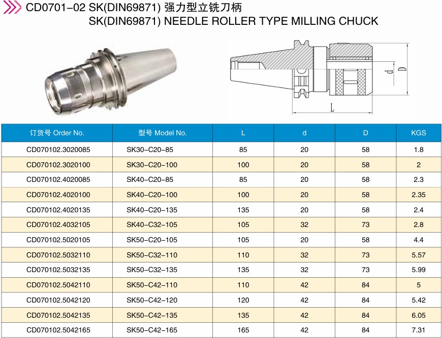 SK(DIN69871) 强力型立铣刀柄 SK(DIN69871)