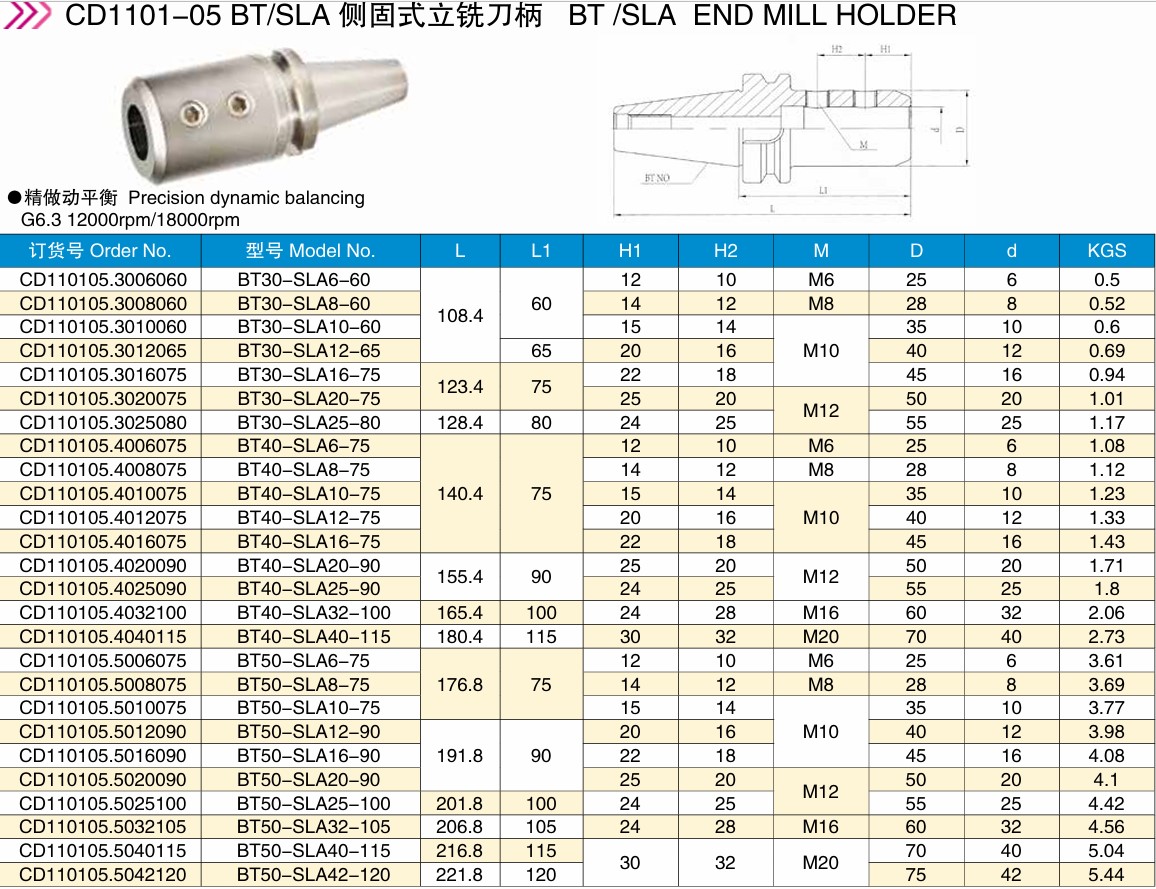 首页 >> 产品中心 >>数控刀柄系列 >> BT-SLA 侧固式立铣刀柄