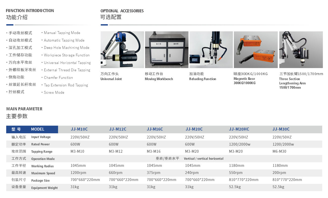 电动攻丝机JJ-M10C/M12C/M16C/M20C/M20HC/M30C