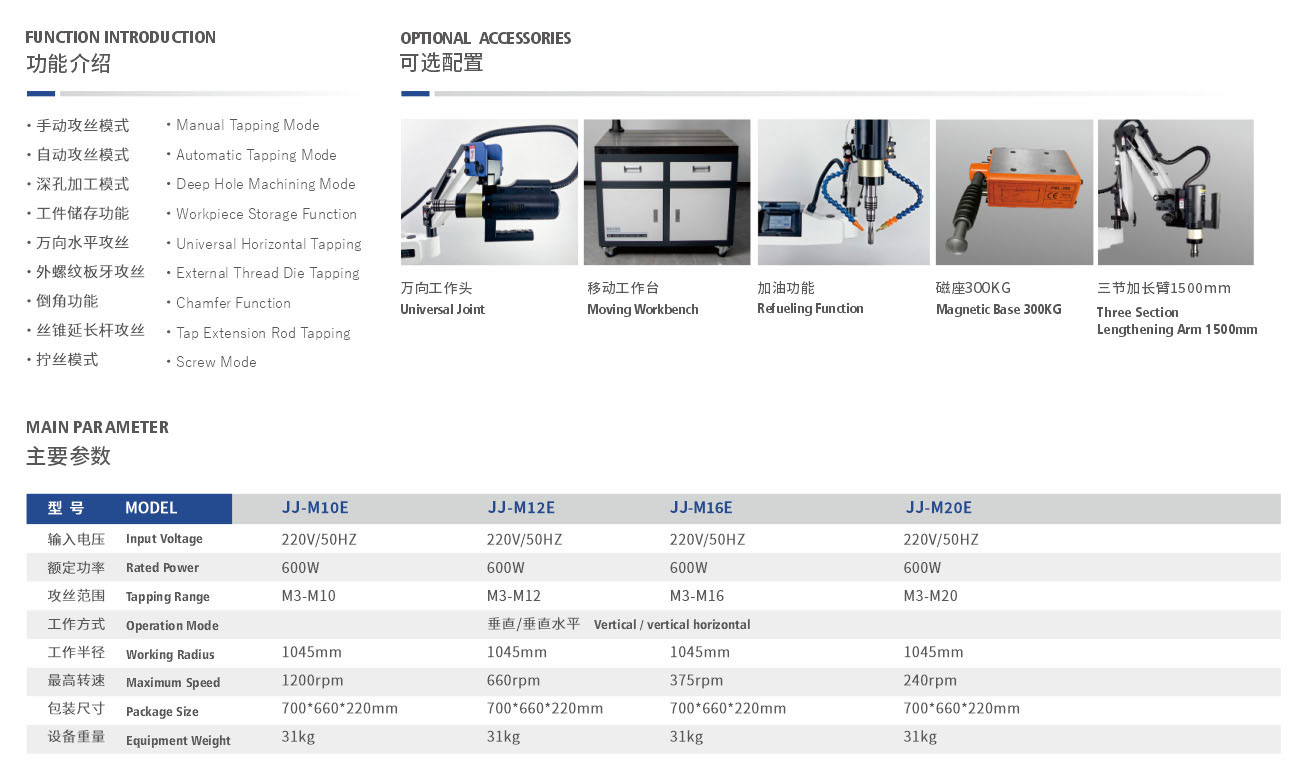 电动攻丝机JJ-M10E/M12E/M16E/M20E