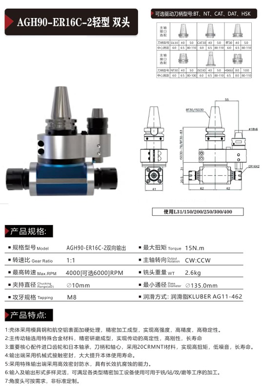 首页 >> 产品中心 >>角度头系列 >> AGH90- ER16C-2轻型 双头