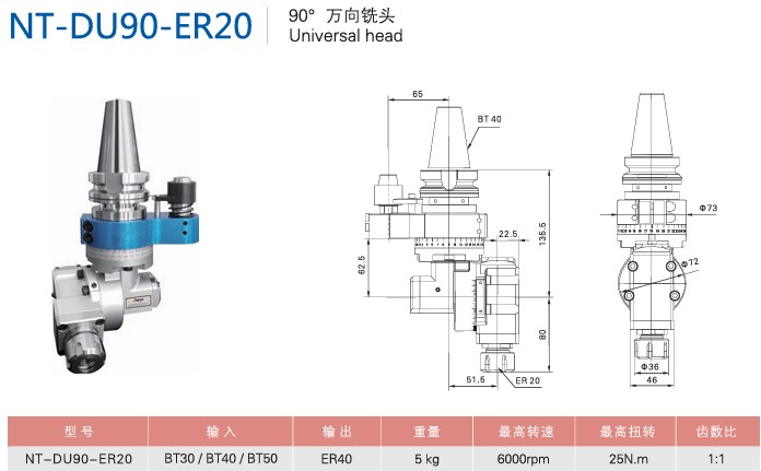 Home >> Products >>Angle Head Series >> 90°NT-DU90-ER20